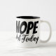Start your day with a dash of humor and a whole lot of attitude with our 'NOPE, Not Today' mug. Whether you're facing Monday blues or just need a little pick-me-up, this mug is your perfect companion. Let the world know that today, you're taking a stand against anything that comes your way. Sip your favorite beverage with a side of empowerment and a smile. Get your 'NOPE, Not Today' mug and conquer the day, your way!