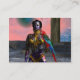 Black tattoed beauty with elegant golden jewellery with her colorful red parrot, under the pink cosmic sky with blue planets.Artistic animation frame from Hyperion World 3d animation sci-fi feature film .