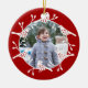 A festive wreath of birds and rose hips surrounds your own photo in this pretty Scandinavian style red and white Christmas holiday decoration.