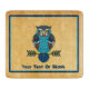 A cute owl in brown and blue, done in Nordic folk art style, superimposed on an old paper background image. Customize by adding your own text. You may remove the outer border, change the font as well as the text color.