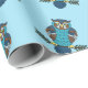 A tiled, cute owl in brown and blue, done in Nordic folk art style. You may change the background color.