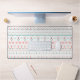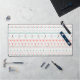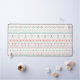 Large desk mat features light colors and rows of Nordic / Scandinavian patterns, creating a subtle design for winter / holiday home decor