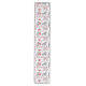 This distinctive table runner features a beautiful and intricate Nordic or Scandinavian pattern in blue gray, red, and white. Images include floral designs, a decorated pony, hearts and line drawings. Unique and very pretty!