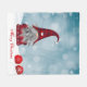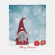 Cute Buffalo plaid gnome on blue and white background with snow and red Christmas balls