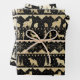 An elegant neutral holiday wrapping paper featuring a Nordic sweater winter animal pattern featuring a gold pattern on black, a beige pattern on black and a black pattern on beige for the third sheet.