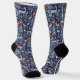 These pretty socks are perfect for the Holiday Season, but can easily go through the entire winter season. They feature a pretty pattern in soft colors of rose pink and blue gray. The images are of a deer, birds, rabbits, leaves, trees, and flowers. Everything is a Scandinavian boho style, and placed on a navy blue background.