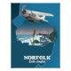 Norfolk East Anglia map in a beautiful style decorated with a light aircraft.