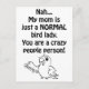 Funny bird quote saying: "Nah... My mom is a normal bird lady, you are a crazy people person!" with a lovebird cute cartoon drawing on the bottom. Perfect gift for crazy bird ladies, bird moms, bird mommies and bird lovers.
