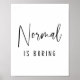 This design is composed of the phrase "Normal is Boring" which is a typography poster wall art that features a clean and modern design that is perfect for brightening up and adding some personality to any space. This lovely print can be personalized further by adding your own custom text, as well as changing the colors. This design has a modern feel and would look great in a modern apartment or loft space.