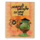 Funny Frankenstein Monster Cartoon Character holding a wooden panel Comic with the text / Comic "Normal People Scare Me", and with Spider pet hanging on the Panel. Original Vector Graphic Art Copyright BluedarkArt.