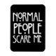 This popular design features a unique layout and a custom font with text that reads: "Normal People Scare Me". This humorous design makes a great gift for that horror story fan in your life. We also have this graphic available on other products, both light and dark fonts.