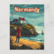 A nostalgic and picturesque depiction of Normandy, France, known for its stunning coastal landscapes and rich historical heritage. The design captures the region's dramatic cliffs along the English Channel, charming seaside towns like Honfleur, and the historic D-Day landing beaches. Rendered in a vintage style, the artwork evokes the serene beauty and historical depth of Normandy, inviting viewers to explore its scenic coastline and cultural landmarks.