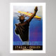 Vintage ocean liner poster for Italian line's transatlantic service showing their flagship of the 1930's the s.s. Rex passing the Statue of Liberty.