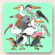 This cute original design features cartoon images of ten different North American wading birds. Cattle Egret joins Great Egret, Great Blue Heron, White Ibis, Least Bittern, Black-crowned Night-Heron, Reddish Egret, Wood Stork, Green Heron, and the pinkest wader, Roseate Spoonbill.