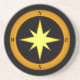 Bronze yellow compass symbol with a black background. Cartography symbol makes and interesting knick knack for engineers, scientists or anyone into travel.