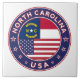 Badge of North Carolina with flag of North Carolina and flag of USA colors, rounded shape.