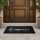 Show some home state pride with this custom doormat featuring "home" in tan calligraphy script lettering with a silhouette map of the state of North Carolina standing in for the letter "O." A heart illustration inside the state map completes the design; you can change the position of the heart to your home city by opening the design tool and dragging the heart shape to your favorite spot. Personalize with your home city, family name and year established to create a perfect finishing touch for your front door, or a memorable housewarming gift.
