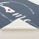 Show some home state pride with this cute rustic blue throw blanket featuring "home" in white calligraphy script lettering with a silhouette map of the state of North Carolina standing in for the letter "O." A red heart illustration inside the state map completes the design; you can change the position of the heart to your home city by opening the design tool and dragging the heart shape to your favorite spot. Personalize with your home city, family name and year established to create a perfect and memorable housewarming gift or addition to your new home.
