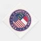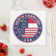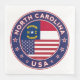 Badge of North Carolina with flag of North Carolina and flag of USA colors, rounded shape.