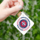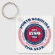 The North Carolina State Keychain has a circular typography design with red, white, and blue colors on a white background. The text includes the state's name, capital, state abbreviation, resident's name, region, time zone, geographic coordinates, the year of its statehood, and the country - The United States of America. Unique patriotic gift idea.