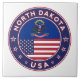 Badge of North Dakota with flag of North Dakota and flag of USA colors, rounded shape.