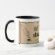 Advertise your notary public business with style and pride. Makes a thoughtful and practical gift for any notary professional who provides legal services to the public. This pen and parchment roll design is presented over a tan scroll papyrus background. Elegant feather quills and ink pots anchor each end of the document. Coffee mug is easily customized by changing "North Dakota" to a name, city, phone number, or any other text of your choice.