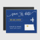You chose a special place for your wedding. Now it's time to celebrate it with this keepsake save the date magnet card, featuring a silhouette map and a tiny plane headed to your destination. To move the heart to the place of your wedding, click personalize and then "customize further."