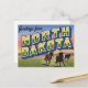 Discover the spirit of the Roughrider State with this classic retro "Greetings from North Dakota" postcard. The vintage large-letter design features an exciting scene of wild horses galloping across the prairie under a colorful sunset sky. This art captures the rugged beauty and expansive plains of North Dakota. It's a fantastic souvenir for residents, nature lovers, Western enthusiasts, collectors of Americana, or anyone who appreciates US state travel art. Send a piece of nostalgia or display it as framed art.