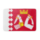 This rug is just as pictured! Vibrant Red and very soft material, nice to step in out of the tub! Matches my set of accessories and shower curtain! A must have to add some whimsy to your bathroom! Very nice, vibrant and clear print! Beautiful!