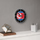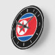 North Korea Flag Elegant Round Clock with the North Korea flag positioned in the middle and lovely white clock numbers on the clock edge. Delightful black background with the white oval elements finalize the design putting emphasis on the elegance. Beautiful combination of black and white with the skillful integration of the national flag colors make this clock the perfect gift and the great show piece on the wall. © CountriesOfTheWorld