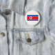 The North Korean national three horizontal bands in blue and red, separated by thinner white stripes. To the left is a white disc with a red five-pointed star. It was adopted in 1948, and has a 1:2 ratio.