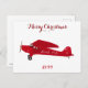 Vintage single-engine red airplane Christmas postcard from the North Pole. Airplane drawing by Claudine Boerner.