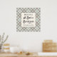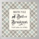A charming design for your guest room, bedroom, kitchen or in a cozy den, this Victorian style Christmas holiday poster design has a neutral taupe (gray-beige) with dusty blue subtle plaid pattern. The color scheme is perfect for a rustic farmhouse look. Beautiful vintage type face spells out "North Pole Bed and Breakfast - Fresh Cookies Served Daily". A reindeer is silhouetted on the design. This poster adds a homespun charm to your decor during the Christmas holiday season.