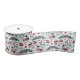 A festive North Pole Christmas design featuring Santa Claus, reindeer, sleighs, candy canes, and holiday signs, all set against a bright white background. This ribbon brings a crisp and cheerful touch to your holiday wrapping, gift baskets, or DIY projects, making every package feel extra magical.