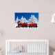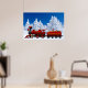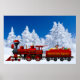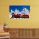 classic north pole express red christmas train loaded with presents and a santa reindeer poster