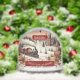 The Christmas Train Snow Globe theme brings a nostalgic, magical, storybook charm to holiday decor. The design features this whimsical train burgundy and pristine snow palette for adornment. The text "North Pole" and quote "Santa's train, no refunds!" can be personalized.