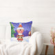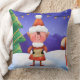 This North Pole Wishes Elf Throw Pillow features an adorable smiling elf holding a letter to Santa, standing in a snowy winter scene beneath twinkling lights. A decorated Christmas tree and festive candy cane complete the charming holiday setting.