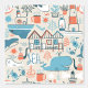 This folk art pattern features a cute doodles of various northern sea objects.