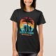 North Shore Beach, Hawaii retro sunset design palm trees, surfers, surfing big waves.