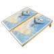 Natural Wood Cornhole Set, Royal Blue and Yellow bags