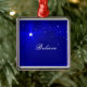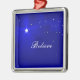 A graphic of the North Star in the Night Sky with the text Believe on a Christmas Ornament.