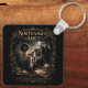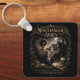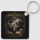 A candlelit Regency heroine gazes toward a foreboding moonlit abbey, surrounded by ancient books, a skull, and ornate gothic botanical framing in rich dark illustration style.