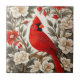 Northern Cardinal Bird Beautiful Floral Ceramic Tile
