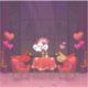 An illustration of a cute dating couple northern cardinal birds on a dinner date for valentine's day surrounded by red heart balloons. This adorable kawaii cartoon design is a gift idea for romantic scene lovers.