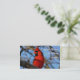 A beautiful bright red cardinal perched on a branch with blue sky background - the back of card is matched to the background color in the photo