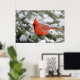 Northern Cardinal in Balsam fir tree in winter Poster