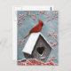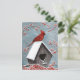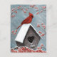 Acrylic Painting of the red Northern Cardinal bird in the winter snow. The snow is gently falling on him, the birdhouse and the frozen holly berries. Original Acrylic Painting Art by Donna Leger. All Rights Reserved. ©irony designs