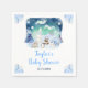 This cute and whimsical watercolor baby shower napkin features a watercolor winter wonderland scene with adorable arctic animals, such as a polar bear, penguin, cat, owl, seal and a moose. In the background are the northern lights, snow capped mountains and trees. The text combines handwritten script and sans serif fonts for a stylish and modern look. Falling snowflakes and beautiful blue floral arrangements give a winter feel. This is perfect for winter and Christmas baby showers.
