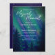 Northern Lights Forrest Magical Moment QR Code Wedding. Invite guests to a celebration shrouded in romance and enchantment with this elegant, deep-toned Northern Lights celestial inspired watercolor wedding invitation. This design features a striking watercolor wash of midnight blues and deep forest greens, creating an atmosphere of twilight magic. Add all your details and add your URL to the QR Code on the back for guests to access your wedding website and details.