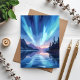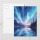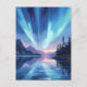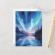 Northern Lights Lake Reflection Night Sky Watercolor Painting Postcard